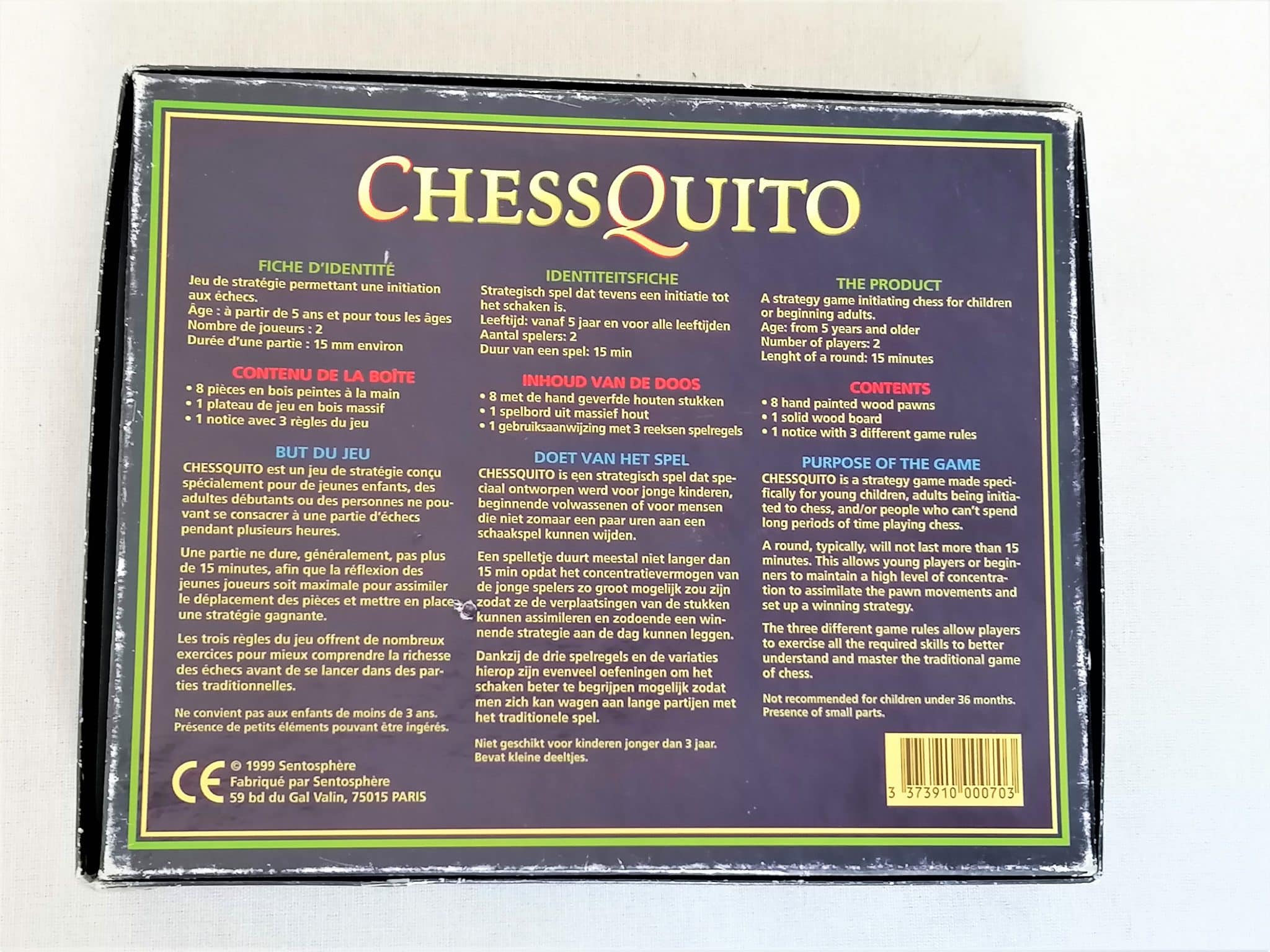 Chessquito est un jeu de stratégie conçu spécialement pour de jeunes enfants, des adultes débutants ou des personnes ne pouvant se consacrer à une partie d’échecs pendant plusieurs heures.
